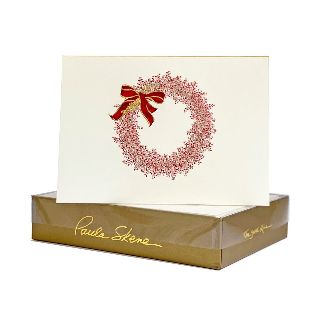 Foil stamped & embossed Pepper Berry Wreath holiday greeting card.