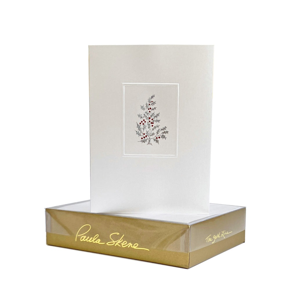 Foil stamped & embossed Framed Holly Branch greeting card.